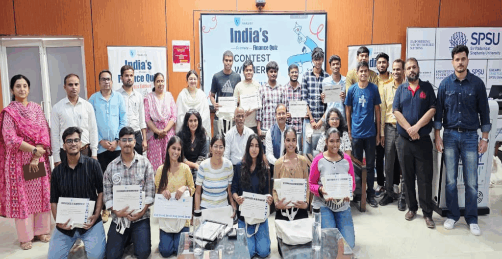 उदयपुर। सर पदमपत सिंघानिया विश्वविद्यालय के प्रबंधन संकाय द्वारा ज़ेरोधा वर्सिटी क्विज़ का सफल आयोजन 12 सितम्बर 2025 को किया गया। इस अवसर पर कार्यक्रम संयोजक डॉ. संजय कुमार यादव ने माननीय कुलपति प्रो. (डॉ.) पृथ्वी यादव, प्रो-वाईस चांसलर प्रो. (डॉ.) प्रसून चक्रवर्ती, डीन प्रो. (डॉ.) सदानंद प्रुष्टि तथा डिप्टी डीन प्रो. (डॉ.) श्वेता लालवानी के अमूल्य मार्गदर्शन एवं सहयोग के लिए हार्दिक आभार व्यक्त किया।